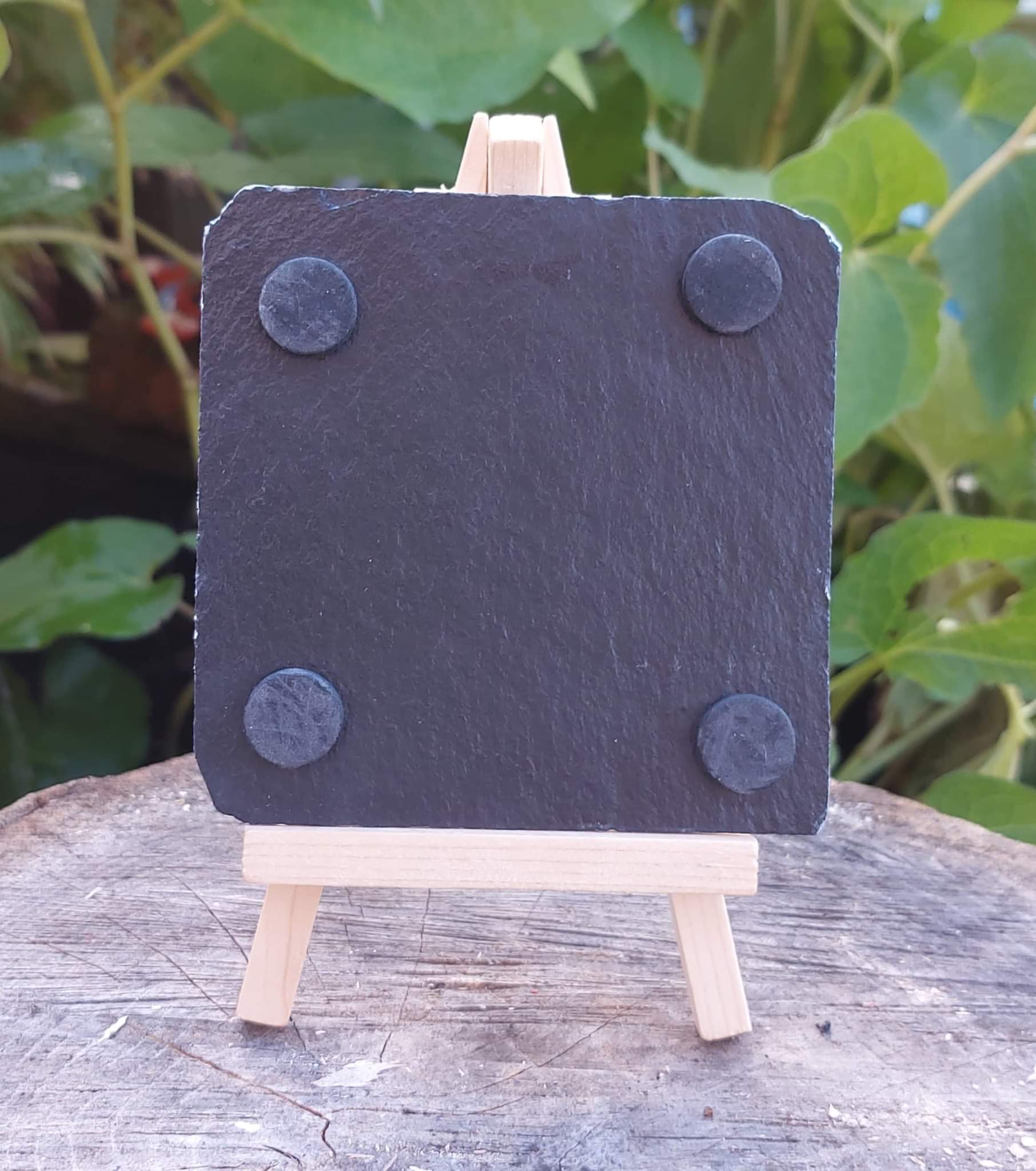 These stunning slate bee coasters are hand decorated by a local artist, using the crafting technique of decoupage and paints. Finished with Poly vine heavy duty varnish which is for use on interior and exterior surfaces requiring an ultra-tough waterproof and heat proof finish with UV protection.