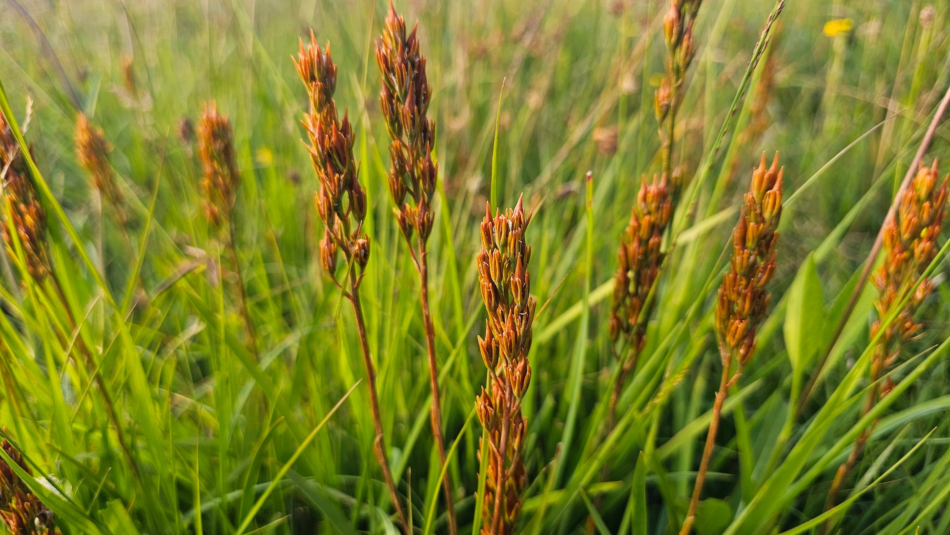 A creeping perennial with yellow star-shaped flowers borne on spikes that later turn bright orange. Found on damp, peaty soils.