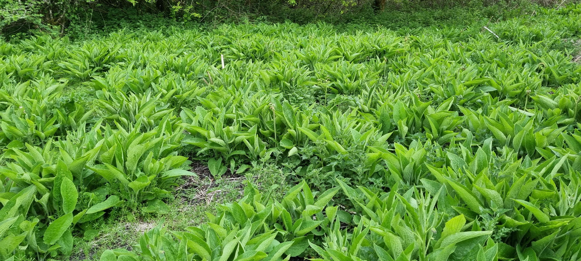 This is our native, perennial comfrey, preferring damper ground and tolerating some shade. The flowers are a great nectar source for pollinators and the leaves are the larval food plant of the tropical-looking Scarlet Tiger moth.