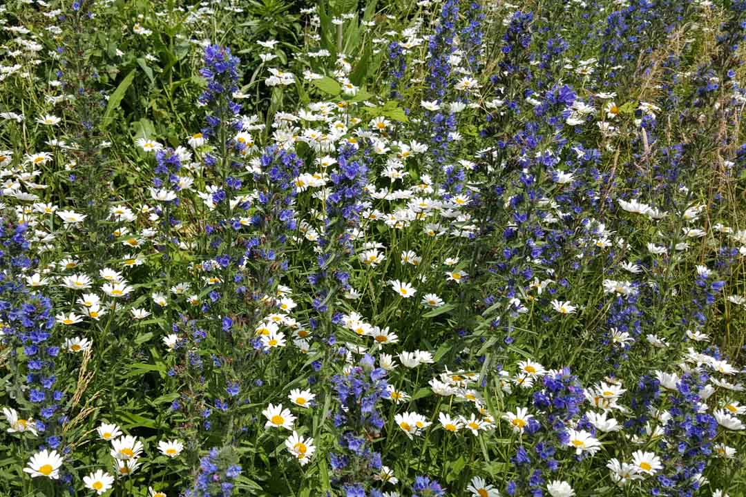 Viper's-bugloss is a biennial herb of disturbed ground, well drained grassy areas, wasteland, railways, roadsides, coastal cliffs, sand dunes and shingle. Also called Snake Flower or Blue Devil. Spikes of blue and pink flowers are produced. A member of the borage family that continues to produce nectar throughout the day.